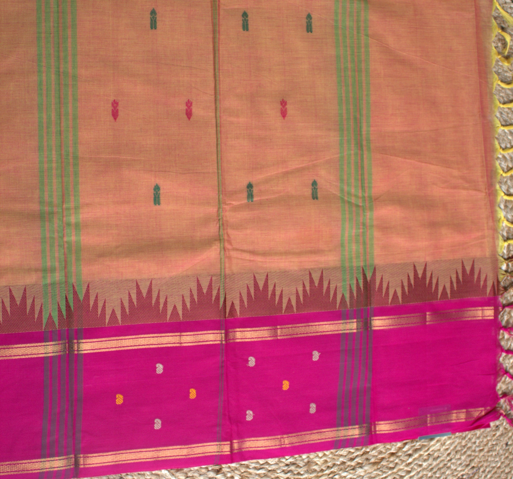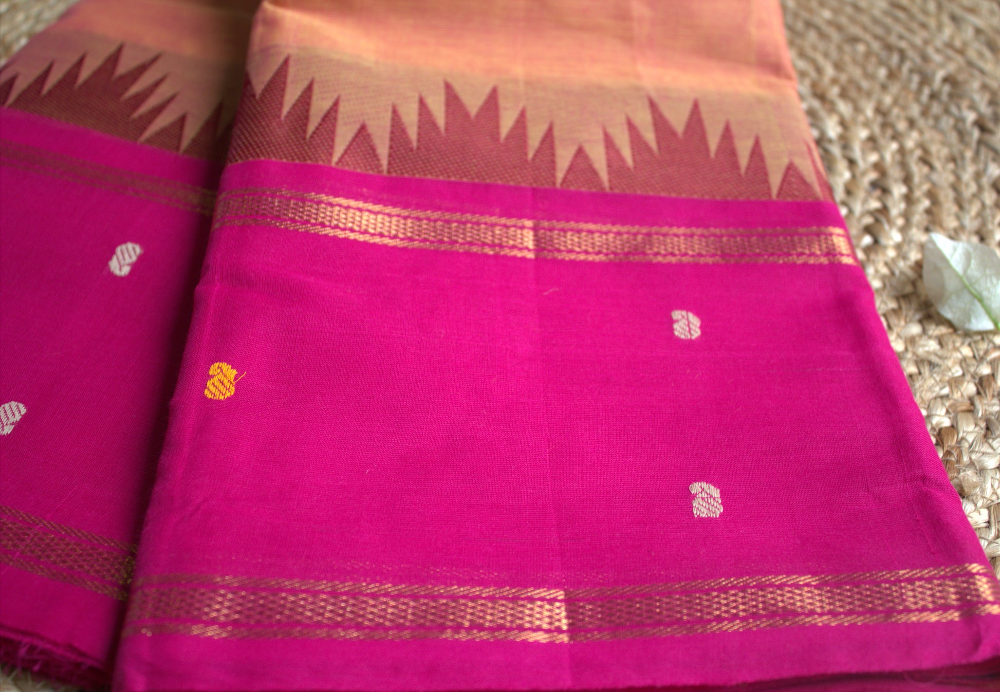 Kanchi cotton Orange saree with Pink temple borer and running blouse