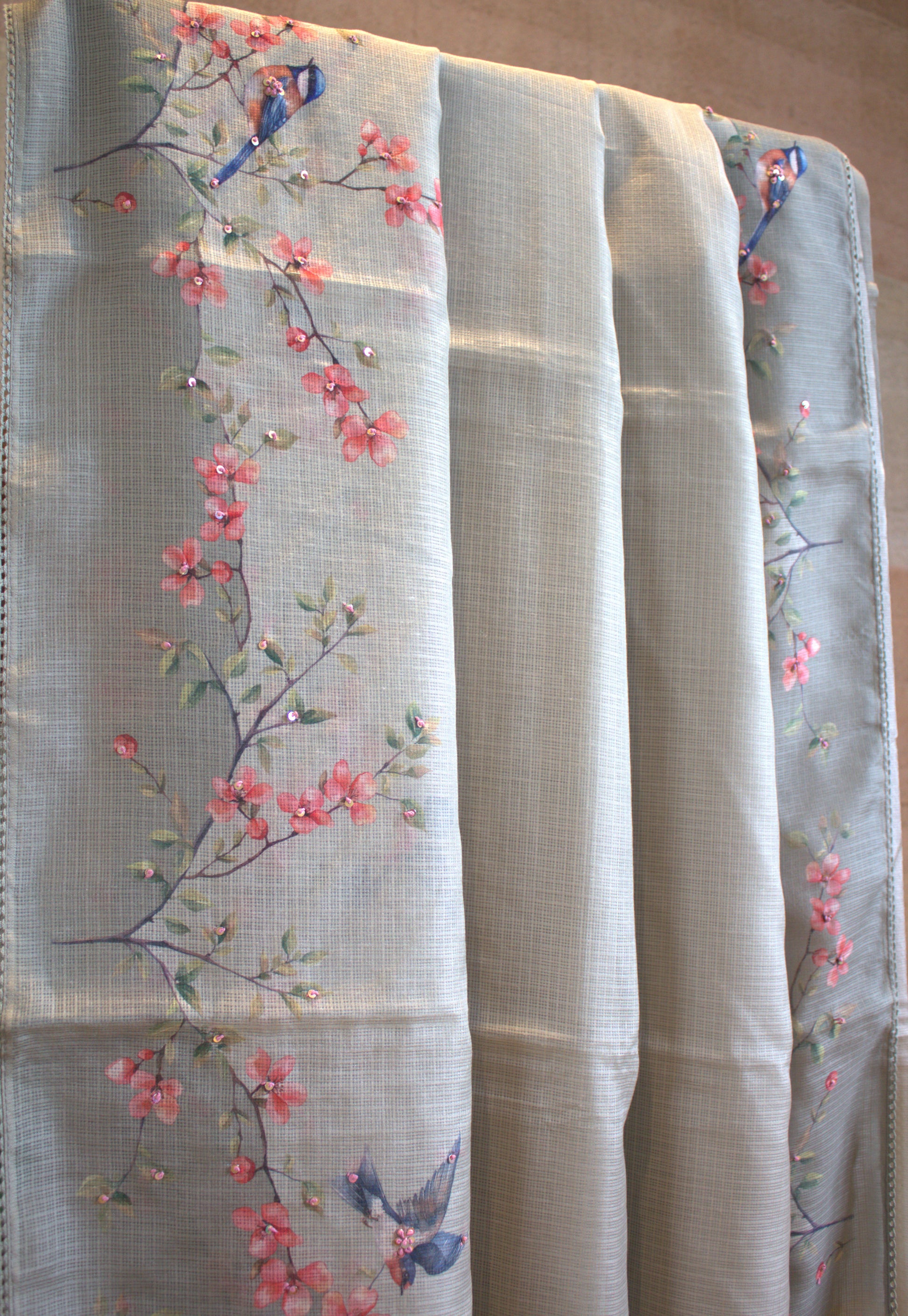 Kota Green saree with Beautiful prints and hand work and printed blouse