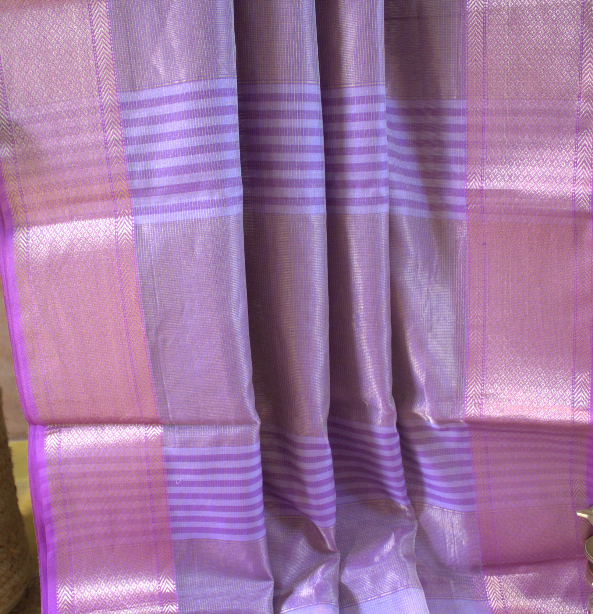 Maheswari Tissue Silk Saree Lavender with Zari border and running blouse