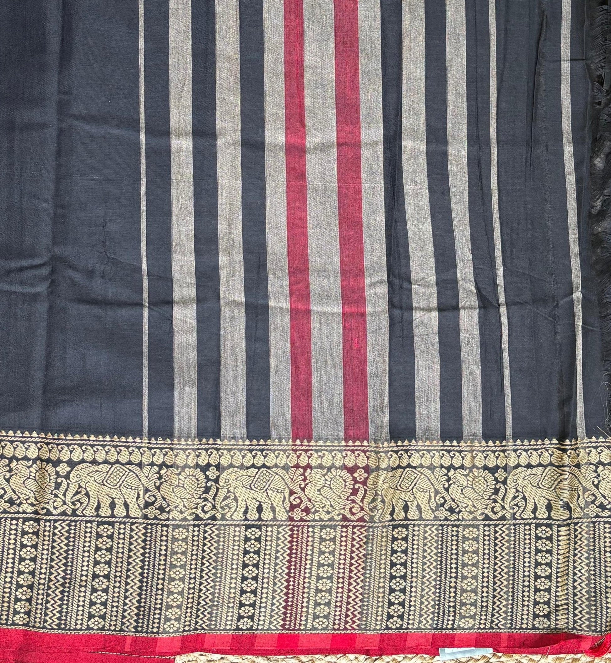 Narayanpet cotton Black saree with big border elephant motifs and running blouse