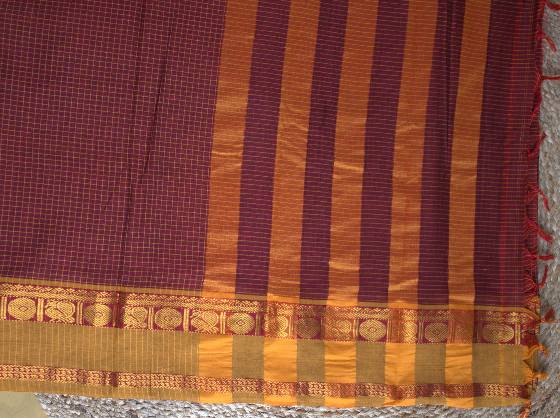 Narayanpet cotton Brown saree with Ganga Jamuna border with running blouse