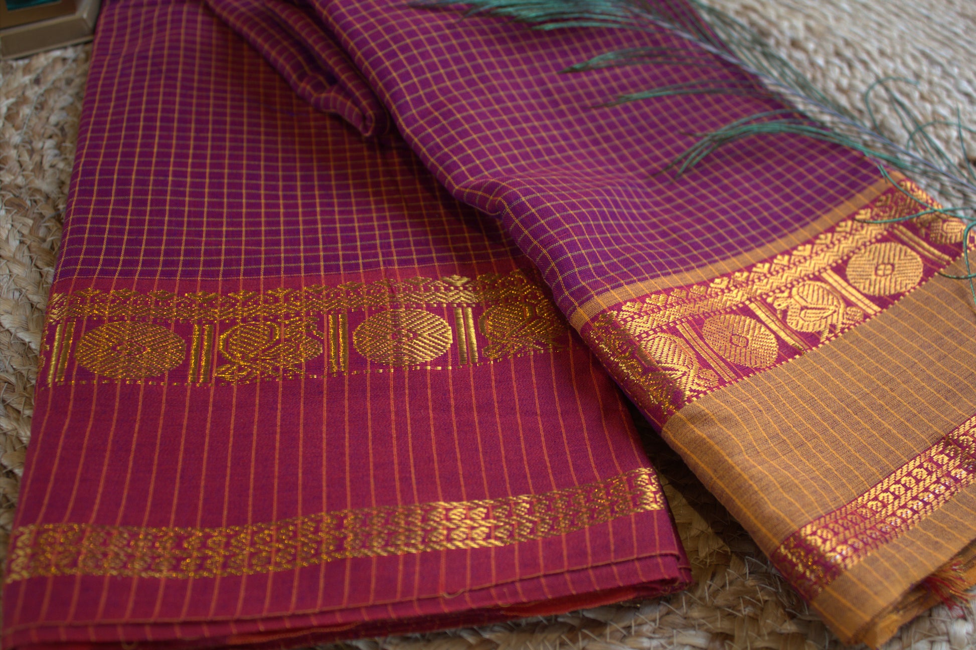 Narayanpet cotton Purple saree with Ganga Jamuna border and running blouse