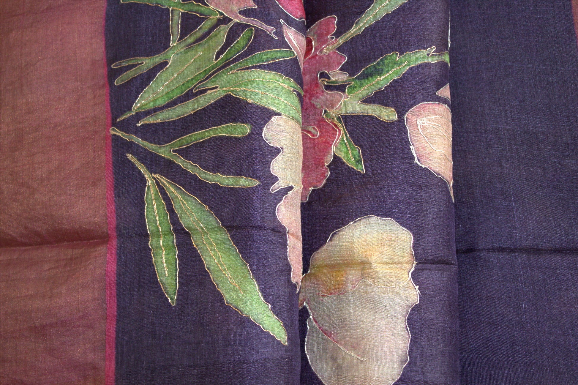 Pure Tussar silk Violet saree with prints and Zari border